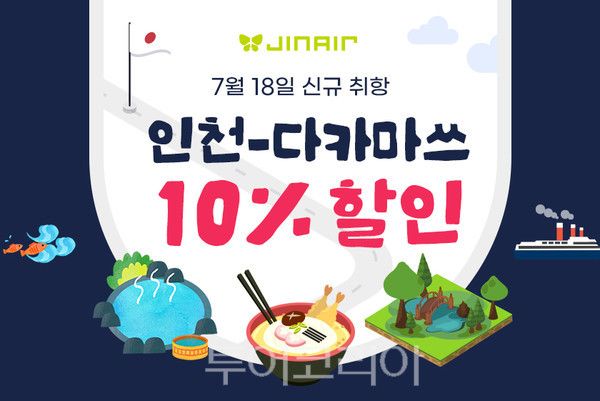 [투어코리아=정하성 기자] 진에어가 7월 18일에 다카마쓰를 신규 취항하며 일본 노선 다각화에 나선다.