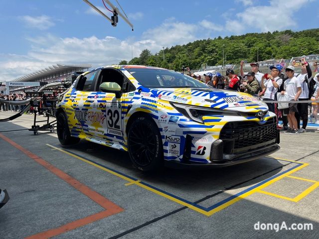 도요다 아키오 회장이 운전하는 토요타 GR코롤라 수소 레이스카. 사진=김상준 동아닷컴 기자