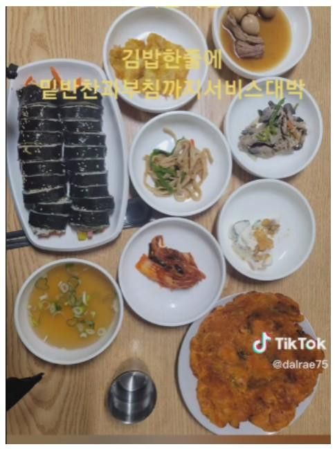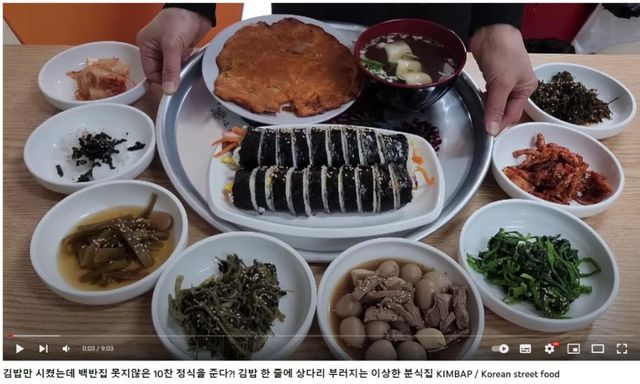 김밥만 시켰는대도 10찬 정식이 나온다는 유튜브가 나옴