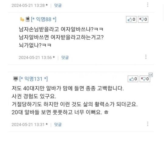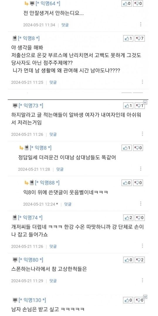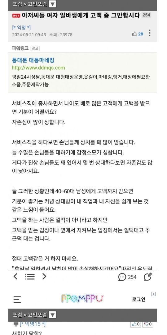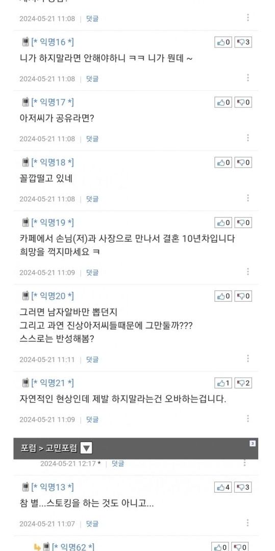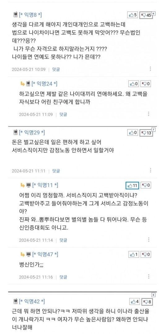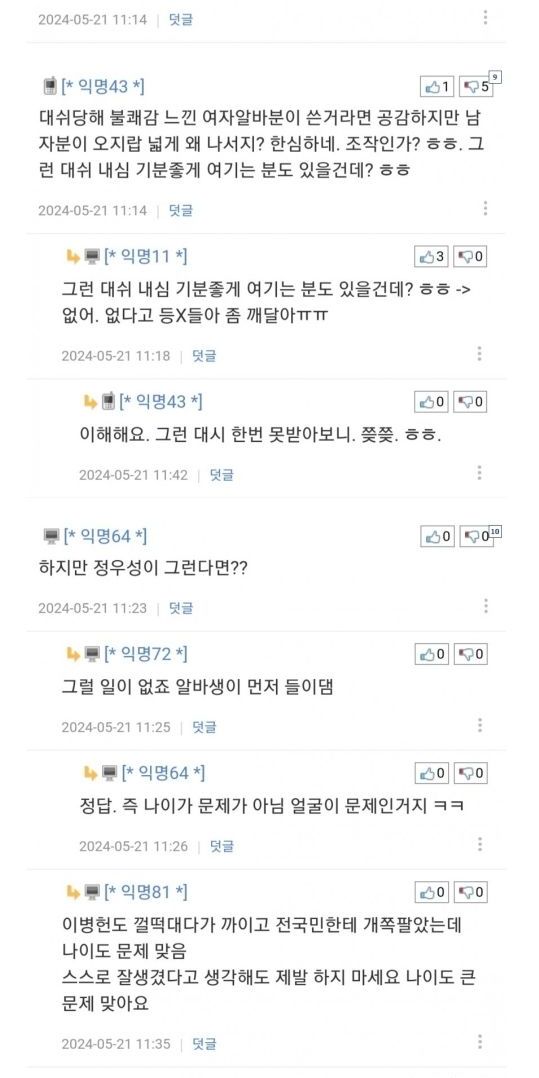 알바생한테 고백하지 말란 글에 단체발작한 4050아저씨들