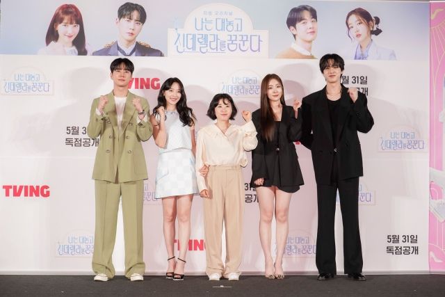 배우 이준영 표예진, 김민경 감독, 송지우 김현진(왼쪽부터)이 티빙 새 오리지널 시리즈 '나는 대놓고 신데렐라를 꿈꾼다' 제작발표회에 참석했다. /티빙