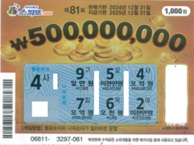 스피또1000 81회차, 1등 5억. / 동행복권 공식 홈페이지