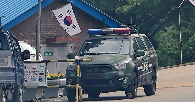 지난 27일 강원 인제군의 모 부대 위병소에 군사경찰 차량이 출입하고 있다. 이 부대에서는 최근 훈련병이 군기 훈련을 받다가 쓰러진 뒤 이틀 만에 숨진 사건이 발생했다 / 연합뉴스