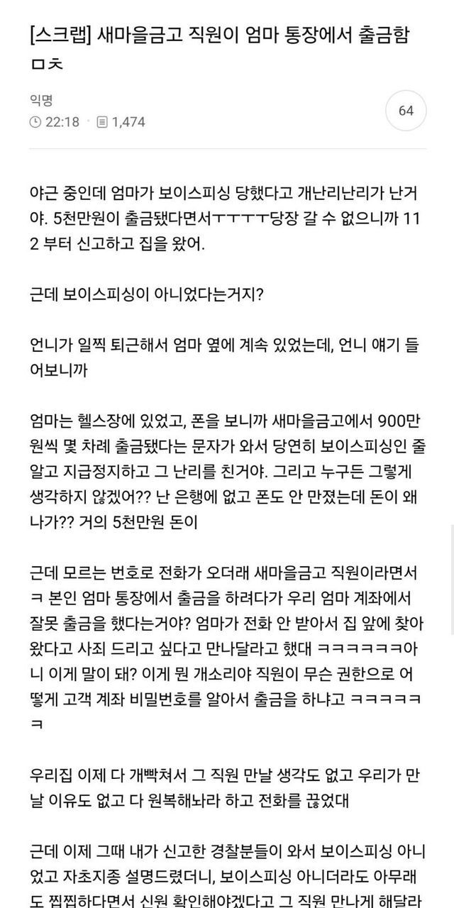 올해 1월 들어온 서울의 한 새마을금고 신입 직원 B 씨는 25일 고객의 예금 통장에서 5000만원을 횡령했다.