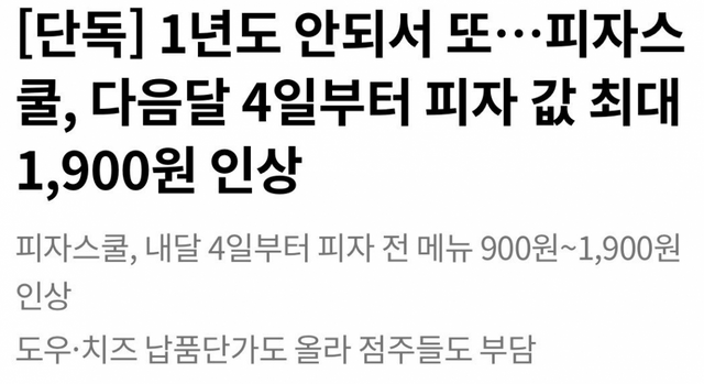 저렴한 가격대로 가성비 좋은 저가 피자 브랜드로 많은 인기를 누리고 있던 피자스쿨