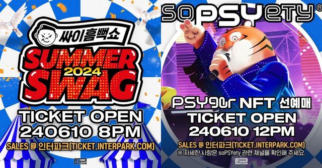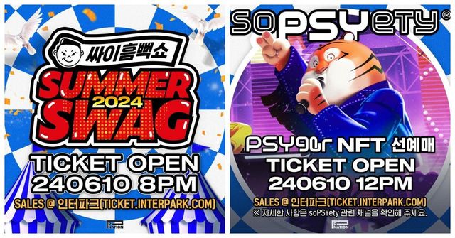 공지에 따르면 '싸이 흠뻑쇼 썸머스웨그(SUMMERSWAG) 2024' 티켓은 다음 달 10일 오후 8시부터 인터파크 티켓에서 예매할 수 있다.