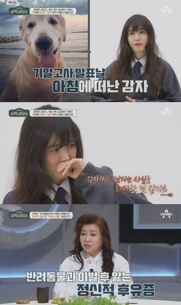 배우 구혜선이 채널A 예능프로그램 '오은영의 금쪽 상담소'에 출연해 반려동물과 이별 후 정신적 후유증을 앓고 있다고 고백한다. /채널A