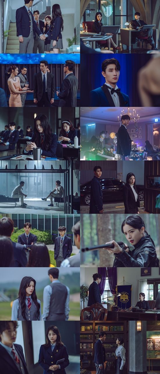 메인 포스터와 예고편이 감각적이고 중독성 강한 하이틴 스캔들에 대한 기대감을 높였다면, 이날 공개된 보도 스틸은 의문의 전학생 강하(이채민 분)가 불러올 비밀스럽고 아찔한 균열을 예고해 호기심을 자극한다.