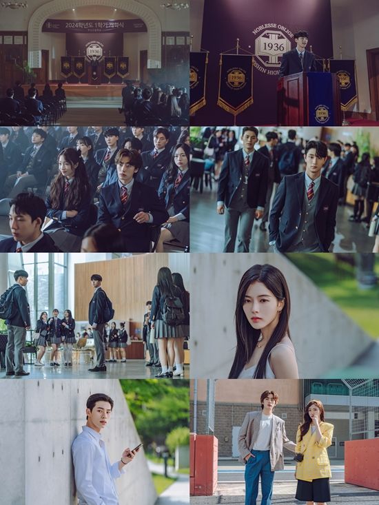 개학식에 들뜬 마음으로 강단에 선 강하, 이 모습을 흥미롭게 바라보는 윤헤라(지혜원)와 이우진(이원정)의 대비가 눈길을 끈다. 주신고의 도도한 '퀸' 정재이(노정의)와 강하의 학교 밖 첫 만남도 포착됐다.