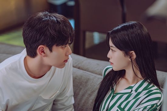 자꾸만 눈에 거슬리는 강하로 인해 완벽하게 설계된 삶에 금이 가기 시작한 김리안(김재원)의 변화는 아슬아슬한 긴장감을 자아낸다. 김리안 앞에서 당당히 손을 잡고 서 있는 강하와 정재이.