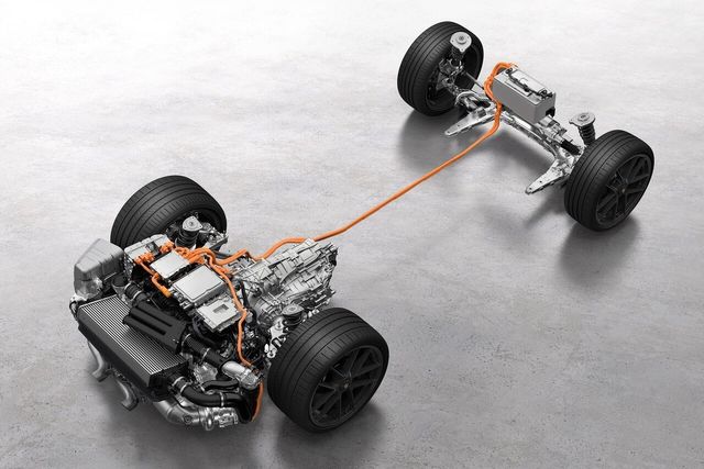 또한, 파워트레인은 새롭고 더 강력한 8단 듀얼 클러치 변속기 (PDK)에 통합된 영구 자석 동기 모터를 포함한다. 공회전 속도에서도 최대 15.3 kg∙m의 추가 구동 토크로 수평대향 6기통 엔진을 지원하고 최대 40kW의 부스트 파워를 제공한다. 포르쉐는 두 전기 모터를 모두 경량화한 소형 고전압 배터리에 결합했다.