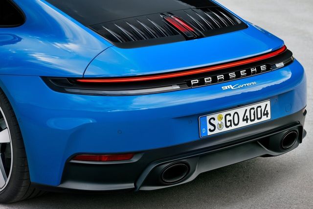 번호판은 더 높은 곳에 위치하고 리어 범퍼는 명료하게 구조화되었다. 모델 별 전용 배기 시스템은 디퓨저 핀에 우아하게 통합된다. 911 카레라 모델에는 스포츠 배기 시스템이 옵션으로 제공된다. 911 카레라 GTS 모델에는 GTS 전용 스포츠 배기 시스템이 기본사양으로 장착된다.