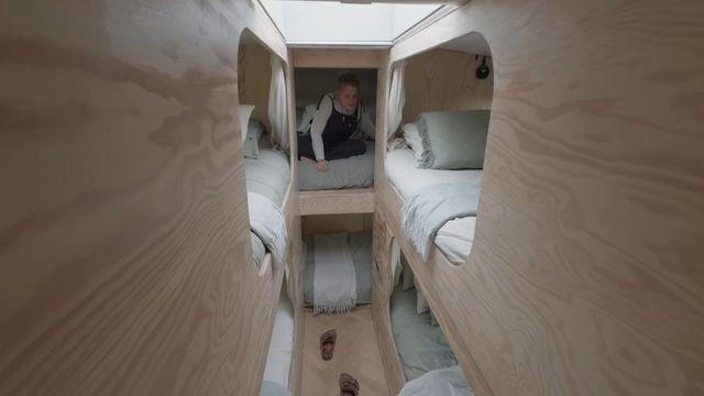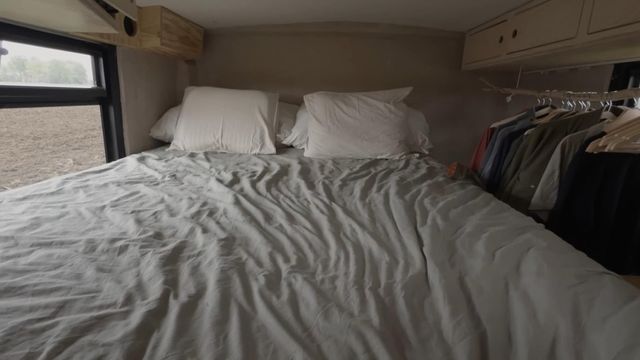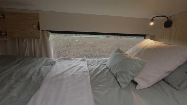 마지막으로 버스의 뒷부분에는 최대 네 명이 잘 수 있는 이층 침대가 있다. 각각의 침대는 2m 길이와 80cm의 너비로, 매우 편안하며 수납공간과 커튼이 있다. 마스터 침실은 버스의 가장 뒤쪽에 위치해 작은 문을 열고 들어가면 더블 침대와 다양한 수납공간이 있음을 확인할 수 있다.