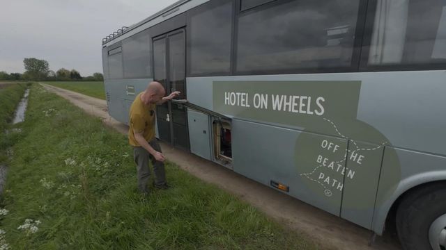 우선 외관을 보면 이 버스가 결코 평범하지 않다는 것을 바로 알 수 있다. 옆면에는 “호텔 온 휠즈(Hotel on Wheels)”라는 큰 스티커가 붙어 있고, 지붕에는 700W의 태양광 패널이 설치됐다.