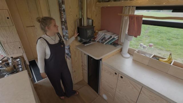 두 부분으로 나뉜 주방 역시 인상적이다. 깊은 싱크대, 풀사이즈 오븐, 4버너 스토브, 넓은 조리 공간, 작은 도메틱 냉장고/냉동고가 있다. 또한, 전력 시스템을 제어하는 Cerbo GX 컨트롤러와 히터 컨트롤러로 구성된 제어판도 있다. 주방 뒤쪽에는 작은 나무 난로가 있어 공간을 따뜻하게 해주며, 아늑한 분위기를 조성한다.
