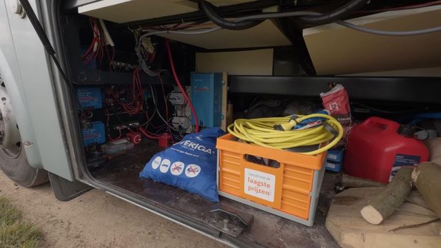 버스를 캠퍼로 개조할 때의 장점 중 하나는 넉넉한 수납공간이다. 이 버스에는 외부 수납 칸이 있어 60리터 프로판 탱크, 500리터 대형 식수 탱크, 각종 도구 및 호스, 전기 시스템 등을 보관할 수 있다.