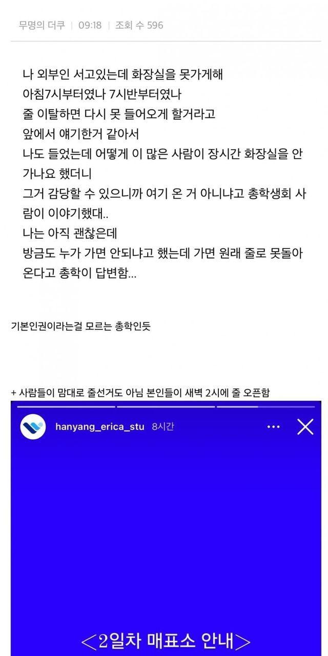 축제 기간 동안 한양대 에리카 캠퍼스에서는 외부인들의 화장실 이용을 제한하는 경우가 발생할 수 있습니다. 이는 캠퍼스 내부의 질서 유지와 학생들의 편의를 위한 조치입니다.