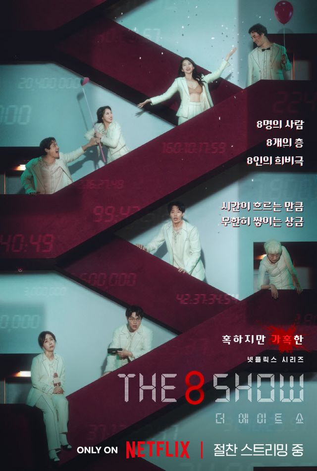 8명의 인물이 8층으로 나뉜 비밀스런 공간에 갇혀 ‘시간이 쌓이면 돈을 버는’ 달콤하지만 위험한 쇼에 참가하면서 벌어지는 이야기를 그린 넷플릭스 시리즈 ‘The 8 Show’(더 에이트 쇼)가 넷플릭스 글로벌 TOP 10 시리즈(비영어) 부문 1위를 차지했다. 넷플릭스 TOP 10 웹사이트에 따르면 ‘The 8 Show’(더 에이트 쇼)는 5월 20일부터 5월 26일까지 4,800,000 시청 수(시청 시간을 작품의 총 러닝 타임으로 나눈 값)를 기록하며 넷플릭스 글로벌 TOP 10 시리즈(비영어) 부문 1위에 등극했다. 또한 아르헨티나, 브라질, 프랑스, 독일, 이집트, 인도네시아, 베트남을 포함한 총 68개 국가에서 TOP 10 리스트에 올리며 공개 2주차에도 뜨거운 인기를 이어가고 있다.