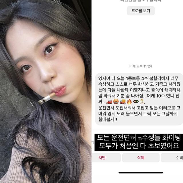 이에 이영지는 “모든 운전면허 N수생들 파이팅. 모두가 처음엔 다 초보였어요.”라고 위로했다.