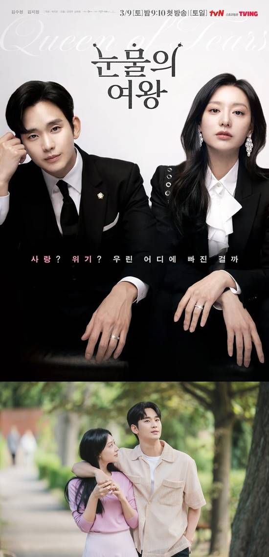 다음 바톤은 토일드라마 '눈물의 여왕'이 넘겨받았다. 백지은 작가의 신작이자, 김지원-김수현이 역대급 비주얼 부부 케미를 보여 시청자들의 눈길을 끌었다. 제작비 400억이 투입된 것으로 알려진 텐트폴 작품이었다.