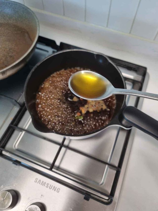 짜계치 비밀 레시피 들기름이 들어가는 모습 / 위키트리