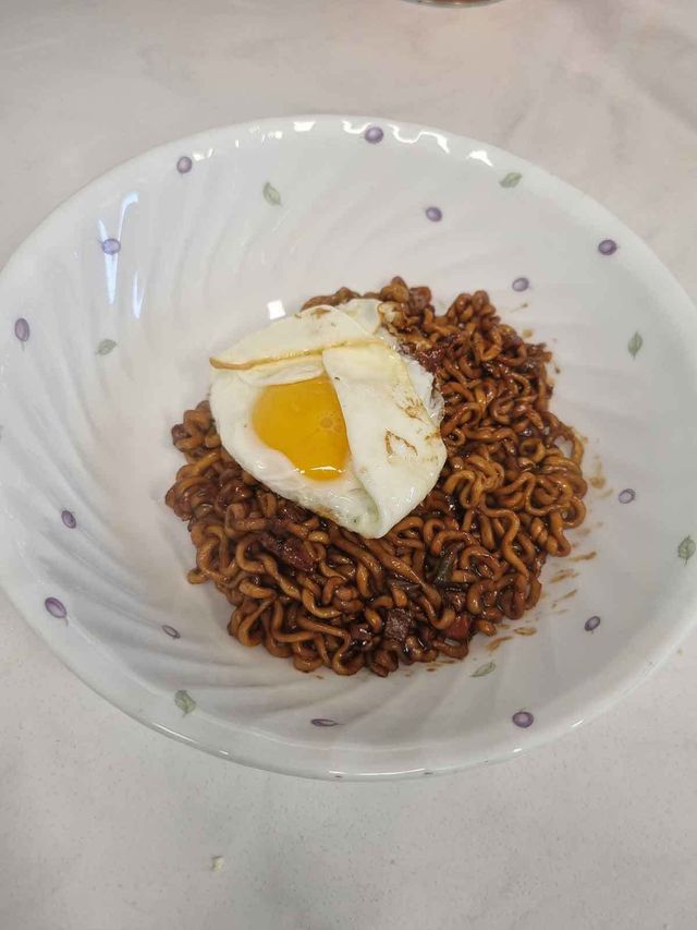 이제 완성된 짜계치를 그릇에 담아 맛있게 즐기면 된다. 짜계치는 짜장라면의 짭짤한 맛과 계란의 부드러운 식감, 치즈의 고소함이 어우러져 환상적인 조화를 이룬다. 특히 치즈가 녹아내리면서 면과 함께 섞이는 맛이 일품이다.