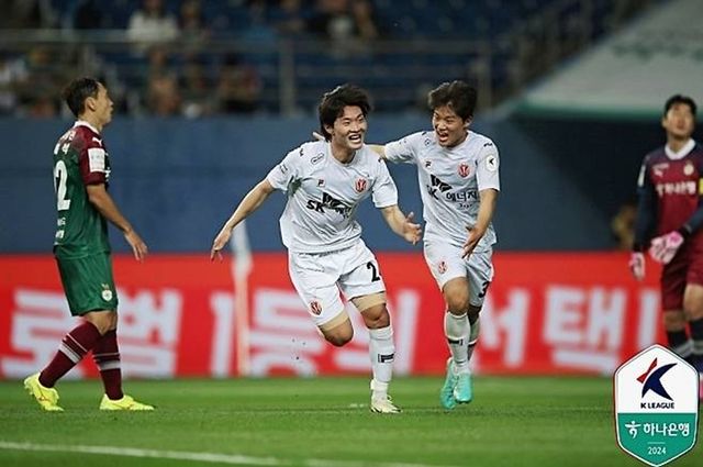 제주는 29일 대전월드컵경기장에서 열린 대전하나시티즌과의 하나은행 K리그1 2024 15라운드 원정경기에서 전반 추가 시간 터진 한종무의 골을 잘 지켜내며 1-0으로 승리하며 2연승을 거뒀다.