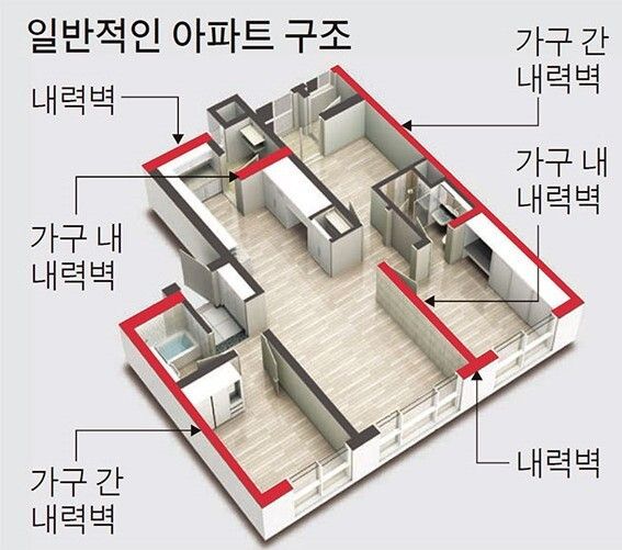 내력벽은 바닥하중의 상당수를 책임지는 기둥같은 벽이고