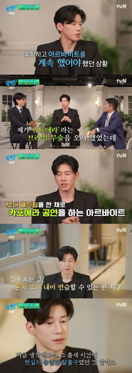 김무열은 "배달 아르바이트나 치킨 배달, 어디 개업하는 가게들 예전에 볼펜 많이 돌리지 않았냐. 그거 전단지 알바. 신문 돌리는 것도 하고 찹쌀떡도 떼어다 팔고 일이 늦게 끝나가지고 지하철역 같은 데서 집까지 걸어오는 거리가 꽤 된다. 그 길이 나한테는 연기할 수 있는 시간이었다. 걸어서 한 시간이라고 하면 한 시간 동안 노래하고 소리 내서 대사 쳐볼 수 있고 사람 없는 공터, 산에 혼자 가서 노래 연습하고 지금 생각해 보면 (연기가) 유일한 탈출구였던 것 같다. 현실에서의"라며 연기에 대한 애정을 과시했다.