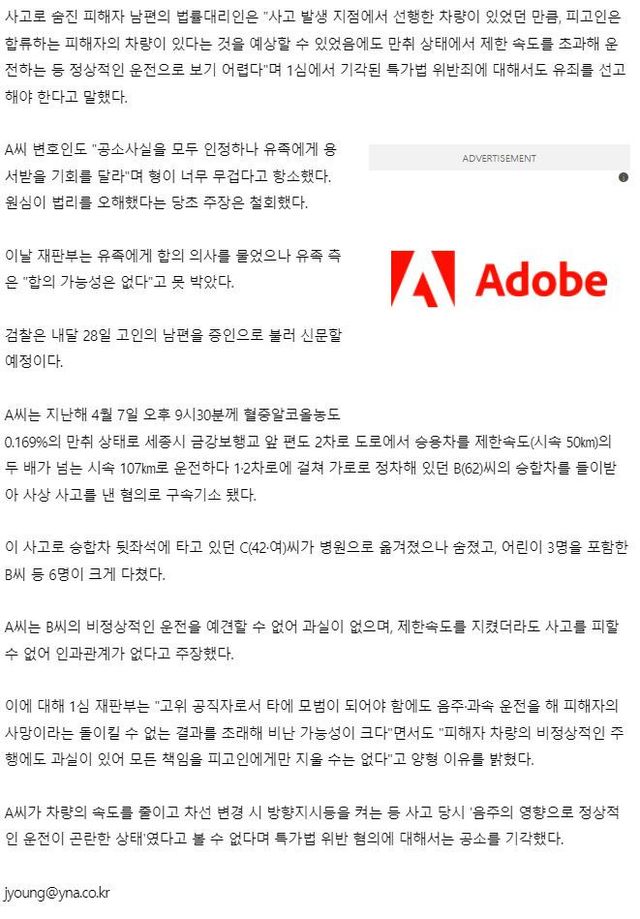 이 사고로 승합차에 타고 있던 여성 1명이 숨지고 6명(어린이 3명 포함)이 다침.