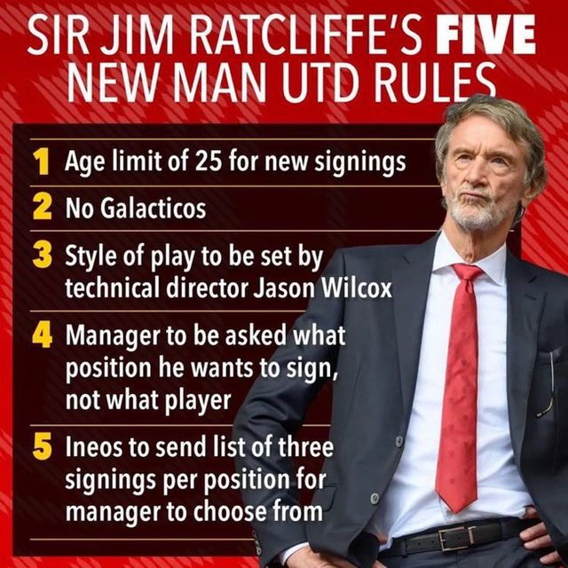 랫클리프 경은 다섯 가지 원칙을 정했다. 영국 ‘더 선’은 29일(한국시간) “새로운 공동 소유주 랫클리프 경은 향후 맨유 이적에 관한 5가지 원칙을 정했다”라고 보도했다.