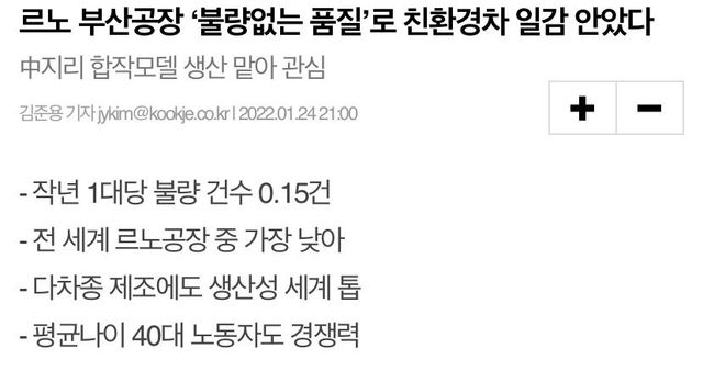 – 전세계 르노 생산공장중 불량률이 가장 적은게 부산 공장