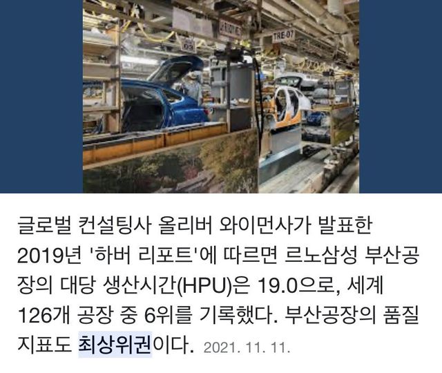 현재 르노 부산 생산공장에서 나오는 차들이 품질이 엄청 좋다고 함