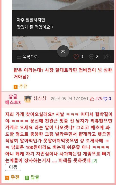 대략 요약하면 사장이 아닌 야간타임 직원의 대응이었다는 주장