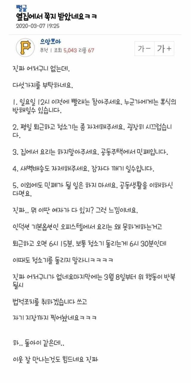 ‘소음이 거슬리면 미안합니다, 오랜 징역으로 몸과 마음이 피로하여 어쩌구저쩌구….’