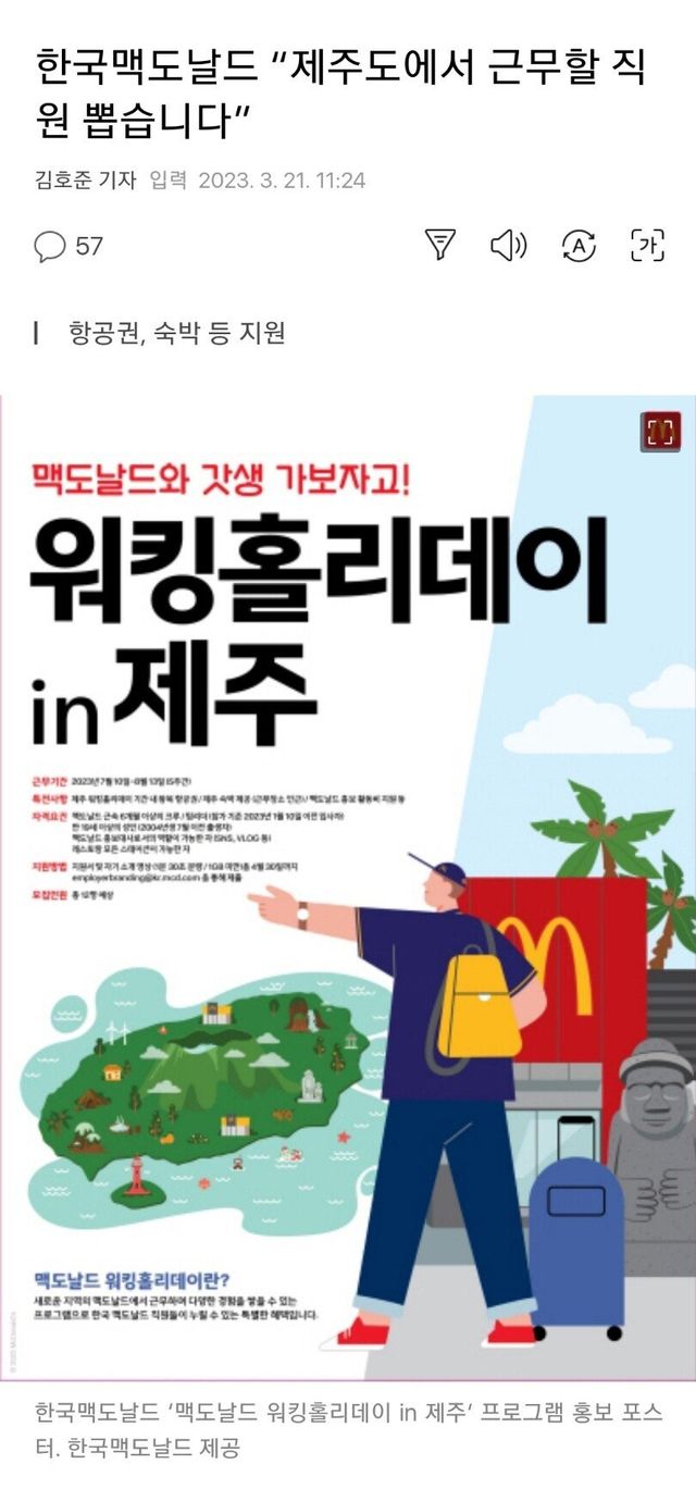 선발 인원은 총 12명으로, 오는 7월부터 약 5주간 제주도의 맥도날드 매장에서 근무