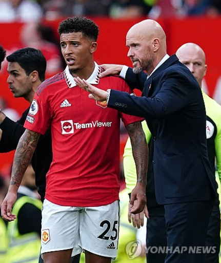 두 사람의 갈등이 공개적으로 드러난 것은 지난 9월 아스널과의 프리미어리그 4라운드 경기에서였다. 텐 하흐 감독은 산초가 훈련에 지각하는 등 불성실한 태도로 임해 1군 명단에서 제외했다고 밝혔고 산초는 사실이 아니라며 공개적으로 논쟁을 벌였다.