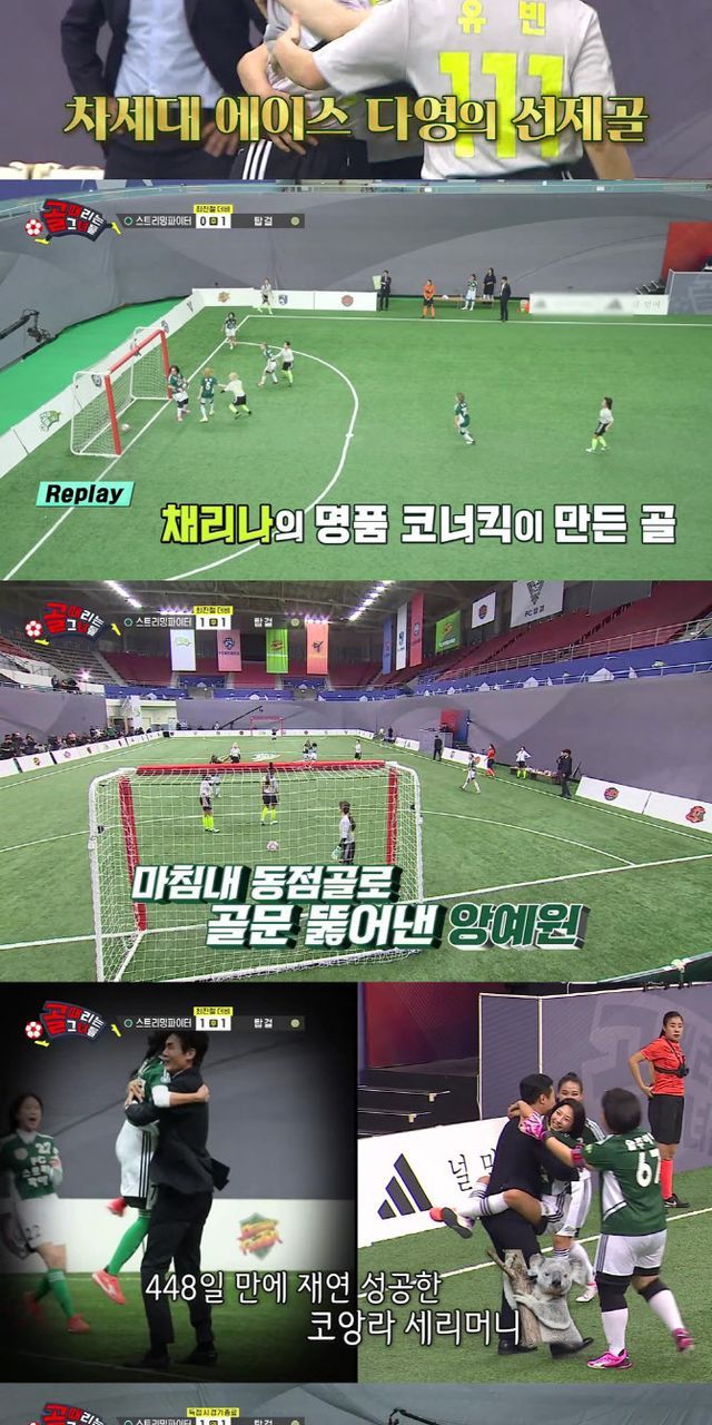 그리고 후반전 시작 후 얼마 지나지 않아 ‘탑걸’의 다영이 선제골을 터뜨렸다. 다영은 지난 ‘국대팸’전 이후 두 경기 연속 골로 물 오른 폼을 과시했다. 4강 진출을 위해 따라잡아야하는 ‘스밍파’는 속공을 전개하며 계속해서 ‘탑걸’을 몰아붙였다. 그리고 후반 8분, 코너킥 상황에서 ‘스밍파’ 앙예원의 동점골이 터지며 승부는 원점으로 돌아갔다. 488일 만의 골로 ‘코알라 세리머니’를 재연한 앙예원은 승부를 연장전으로 이끌었다.