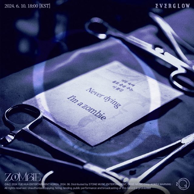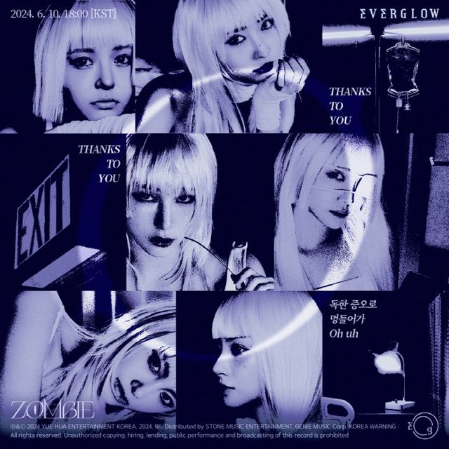 에버글로우는 30일 공식 SNS를 통해 5번째 싱글 ‘좀비’(ZOMBIE) 리릭 포스터 두 장을 게재했다.