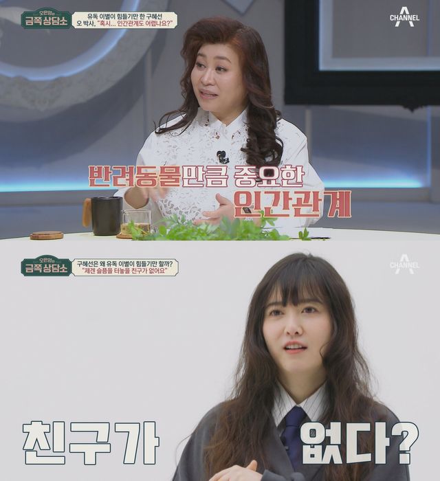 이날 구혜선은 "슬픔을 나눌 친구가 없다", "인간관계는 무조건 1:1이다" 등 자신의 인간관계 방식을 고백해 모두를 놀라게 만든다.
