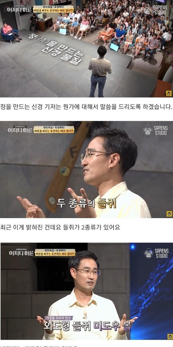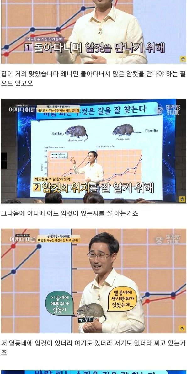바람을 피는 들쥐 가정적인 들쥐 두가지가 있는데