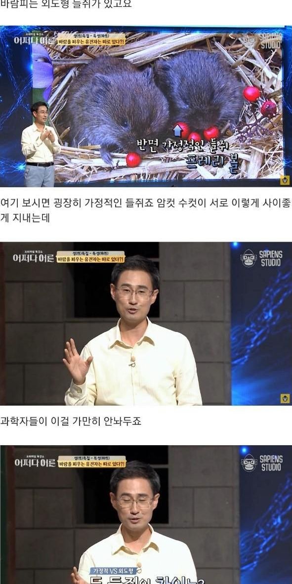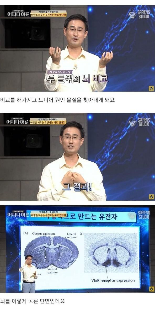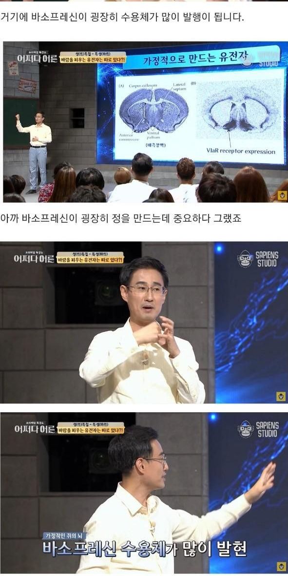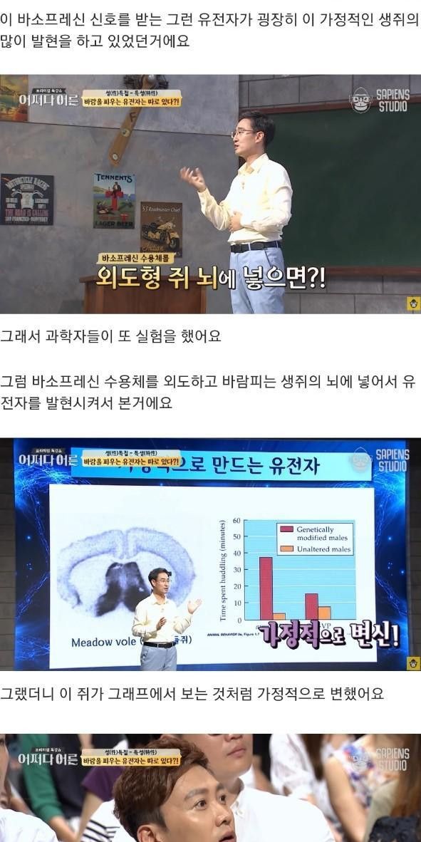 외도적인 쥐의 뇌에 바소프레신 수용체를 넣은 결과 갑자기 바람을 안피게 되는것으로 검증함
