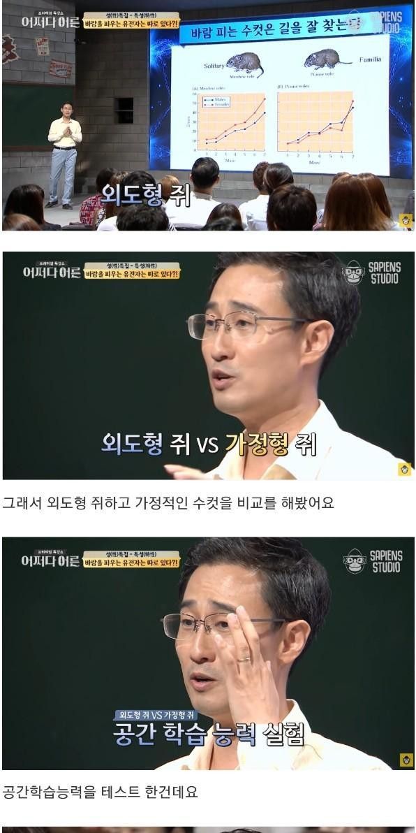 또한 외도적인 쥐는 공간 학습능력이 가정적인 쥐보다 월등히 높은것으로 나왔는데