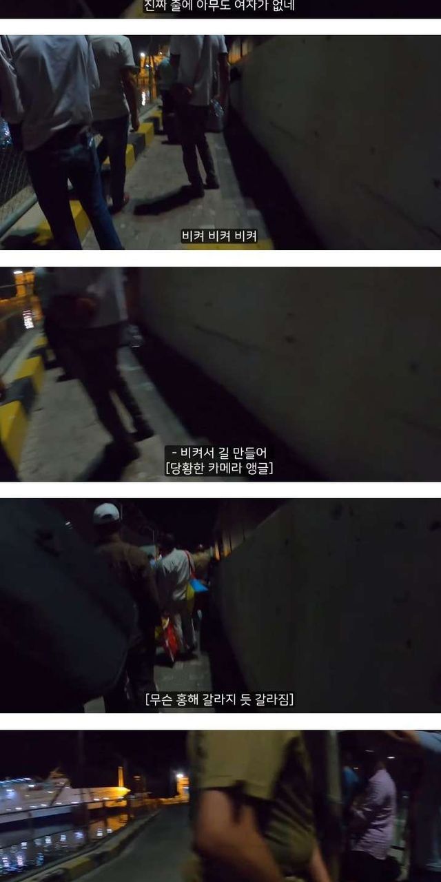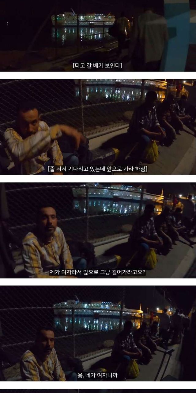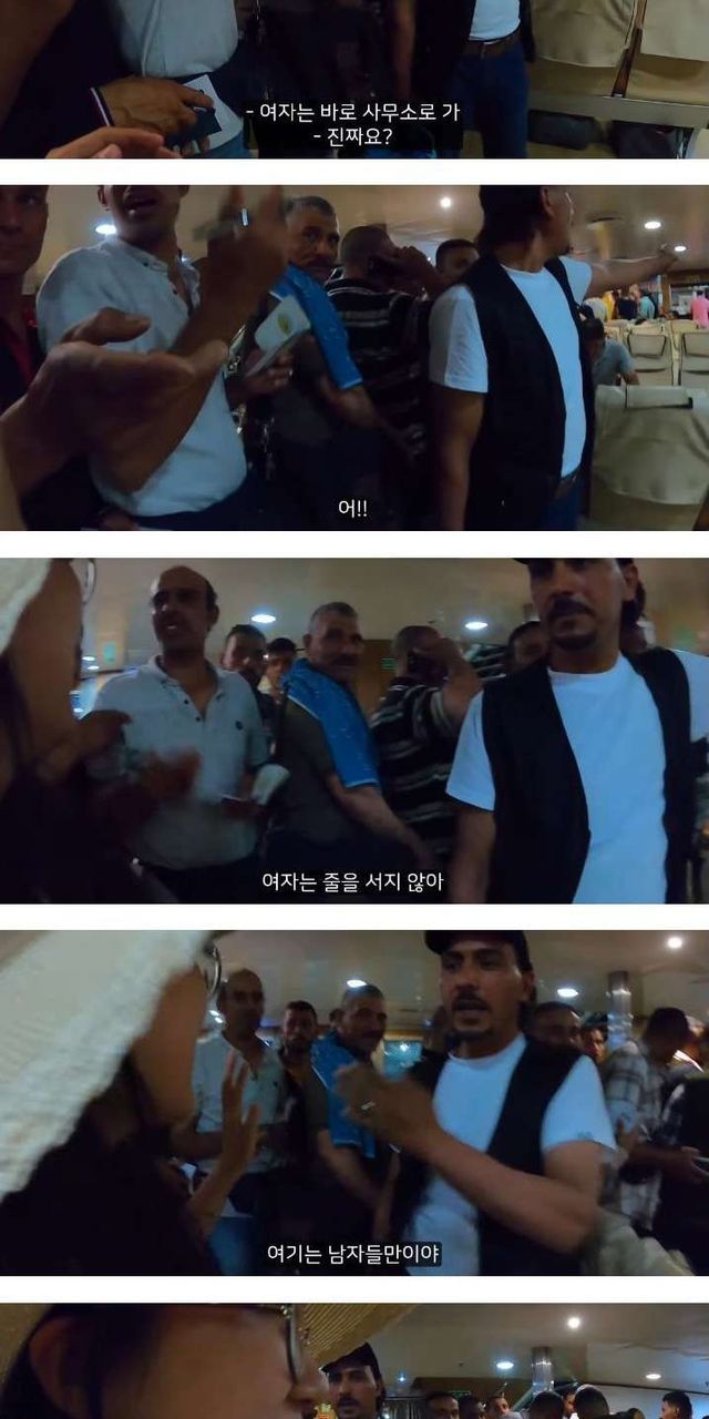 이게 맞는진 모르겠는데 댓글에서 말하길 아랍국가에서 여자는 밖에 있지말고 빨리 집에 들어가라는 뜻에서 줄안선다고 함
