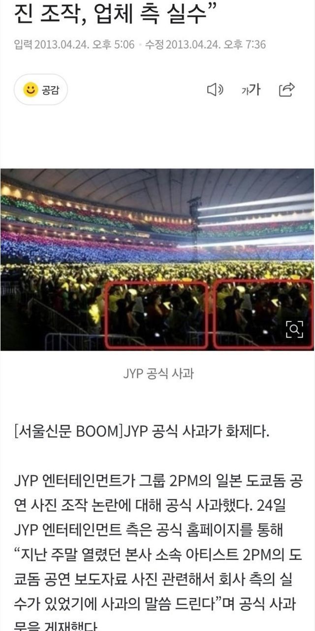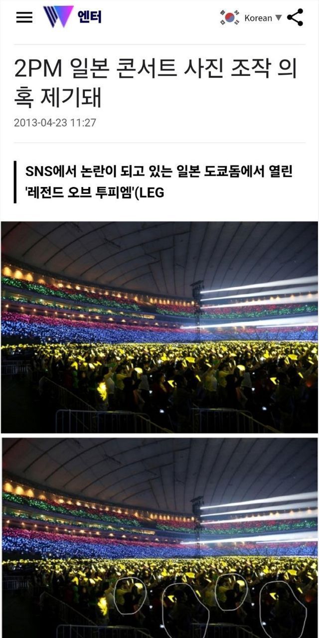 과거 2pm콘서트사진 뻥튀기도 네티즌이 잡아서