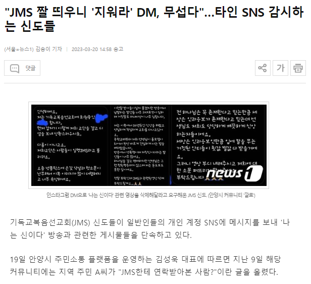짤 올리면 ㄷㄷ… 신도들한테 디엠옴 ㄷㄷ