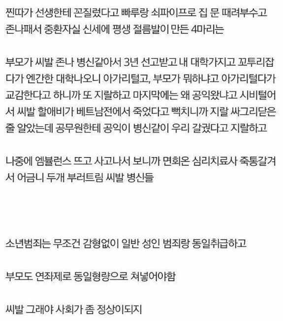 소년범들의 현실은 우리가 생각하는 것보다 훨씬 복잡하고 어렵습니다. 재사회화 과정에서 마주하는 여러 문제와 도전들은 소년원에서의 생활을 통해 더 분명히 드러납니다. 이들의 현실을 이해하는 것은 사회 전체가 청소년 범죄 예방과 교정에 더 효과적으로 대응하는 데 도움이 됩니다.