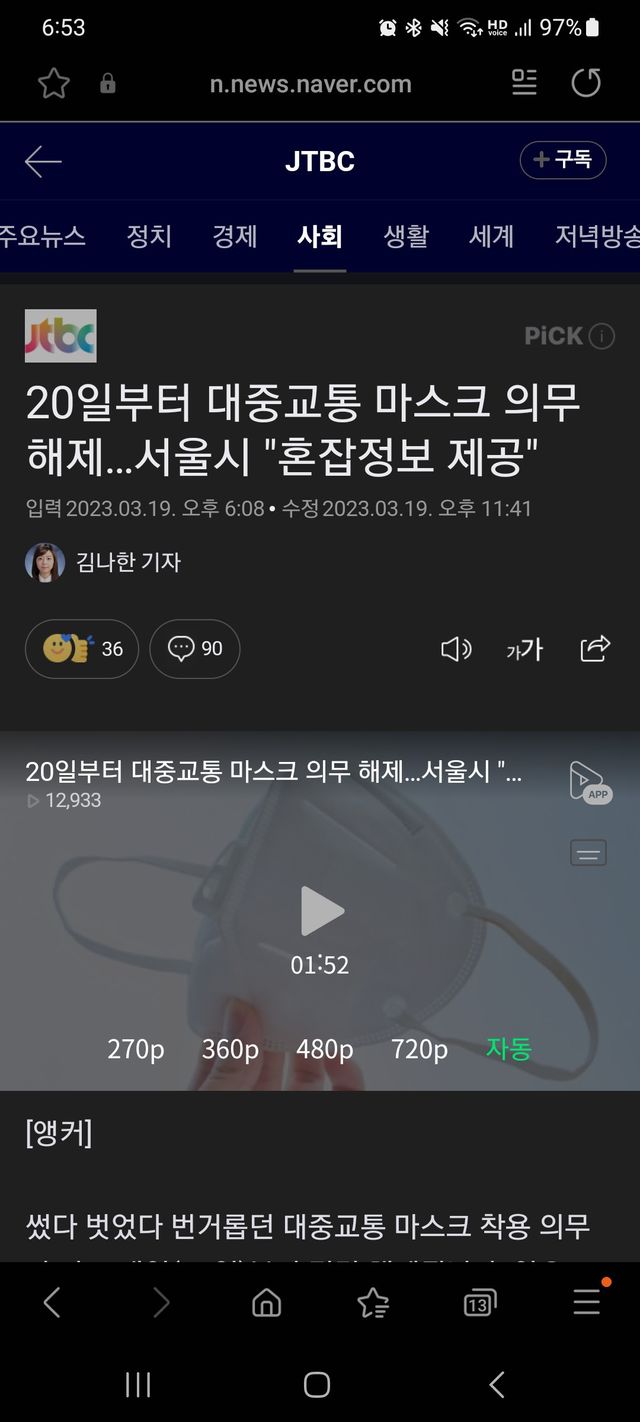 눈치 때문에 노마스크는 당분간 힘들듯