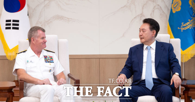 [더팩트ㅣ용산=박숙현 기자]윤석열 대통령은 30일 신임 美 인도·태평양사령관을 접견하고 "연합방위태세 강화를 위해 힘써달라"고 당부했다.