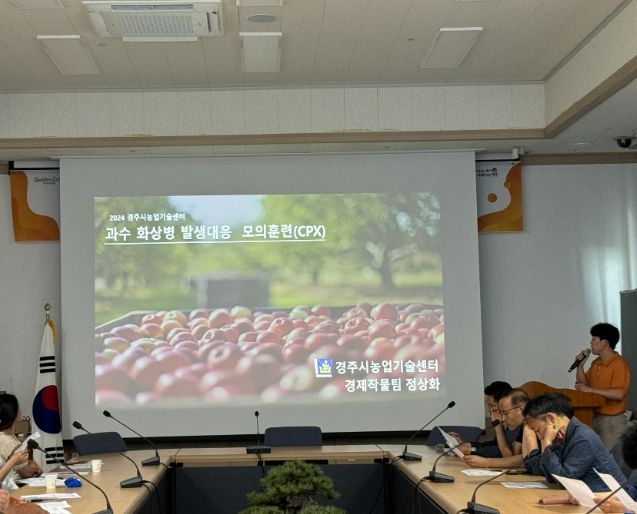 [파이낸셜경제=김예빈 기자] 경주시 농업기술센터가 지난 23일 전 직원을 대상으로 한 과수 화상병 발생 모의훈련(CPX)이 성황리 마무리 됐다.